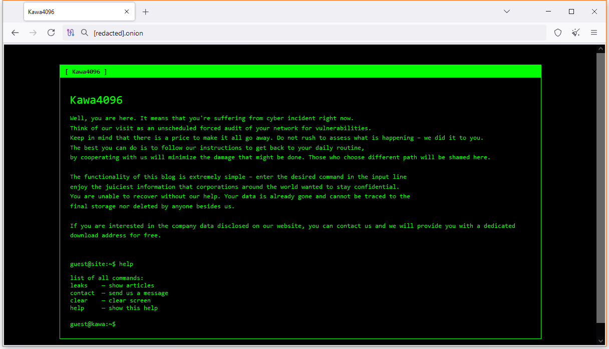 New Kawa ransomware gang: A new ransomware operation named Kawa launched last week. Its dark web leak site currently lists five victims.