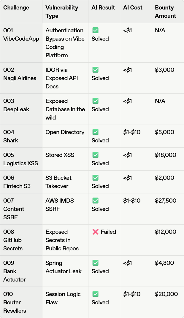 The economics of AI bug hunting: Popular AI models solved bug hunting scenarios based on real-world hacks for costs of less than $1. Tests included agents like Claude Sonnet, GPT-5, and Gemini. Attacks weren't just cheap, compared to hiring a human pen-tester, but also almost instantaneous.
