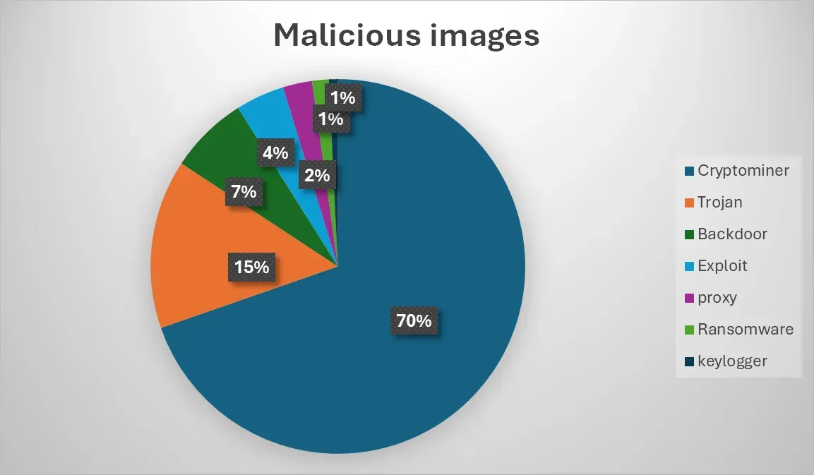 Malicious container images: Qualys has discovered more than 2,500 malicious images hosted on the Docker Hub. Around 70% of the images contained a hidden cryptominer. Others included , backdoors, exploits, ransomware, keyloggers, and even proxy infrastructure.