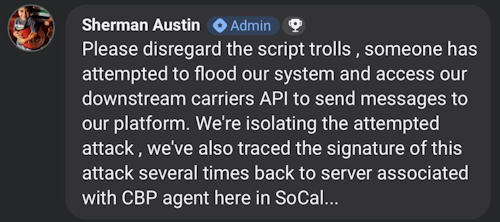 StopICE admin Sherman Austin said the hackers targeted a downstream carrier API, which is how they managed to spam users.