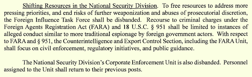 DOJ disbands Foreign Influence Task Force: On her first day in office, new US Attorney General Pam Bondi disbanded a Justice Department task force that was tasked with investigating foreign influence operations. The unit was set up in 2017 to counter foreign influence operations targeting US elections. The unit's work contributed to charges and sanctions against many Russian government and private organizations involved in info-ops and bot farms targeting elections in the US around the globe. [Source: Justice Department/PDF]