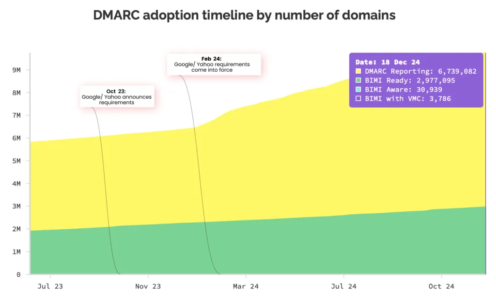 DMARC adoption grows: Email security firm Red Sift says DMARC adoption has almost doubled since Google and Yahoo announced stricter requirements for bulk email senders last year.