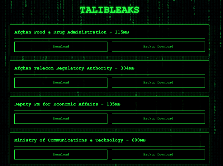 Taliban leak: Hackers have breached and leaked documents from 21 Taliban ministries and government agencies. The hackers have leaked over 50GB of data on a website named TalibLeaks. The documents allegedly include the names of political prisoners and the details of travel bans for certain government employees. The Taliban government has confirmed the authenticity of the files but denied suffering a security breach. [Additional coverage in Amu] [h/t DataBreaches.net]