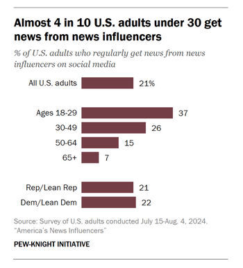 A Pew Research study published last month found that one in five adult Americans were getting their news from social media influencers instead of news organizations. For adults under 30, that figure was 37%. For anyone with a social media account, it is not a surprising stat.
