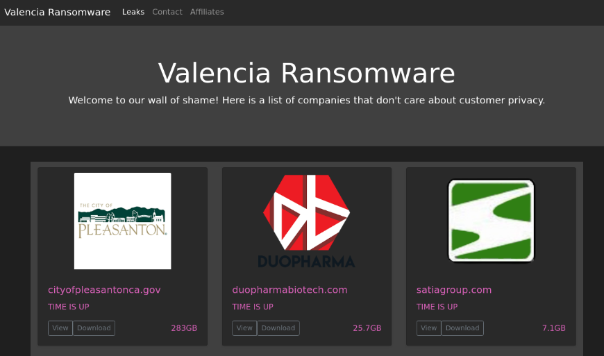 Valencia Leaks: A new ransomware gang named Valencia popped up in September. Since then, it got its website and Twitter account taken down. Unclear if they're still active.