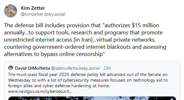 Congress passes NDAA with cyber provisions: The US Congress has passed the 2025 National Defense Authorization Act. This year, the NDAA included several cyber provisions, such as cyber and technology aid for foreign allies and US cyber defense hardening projects. [Additional coverage in NextGov]