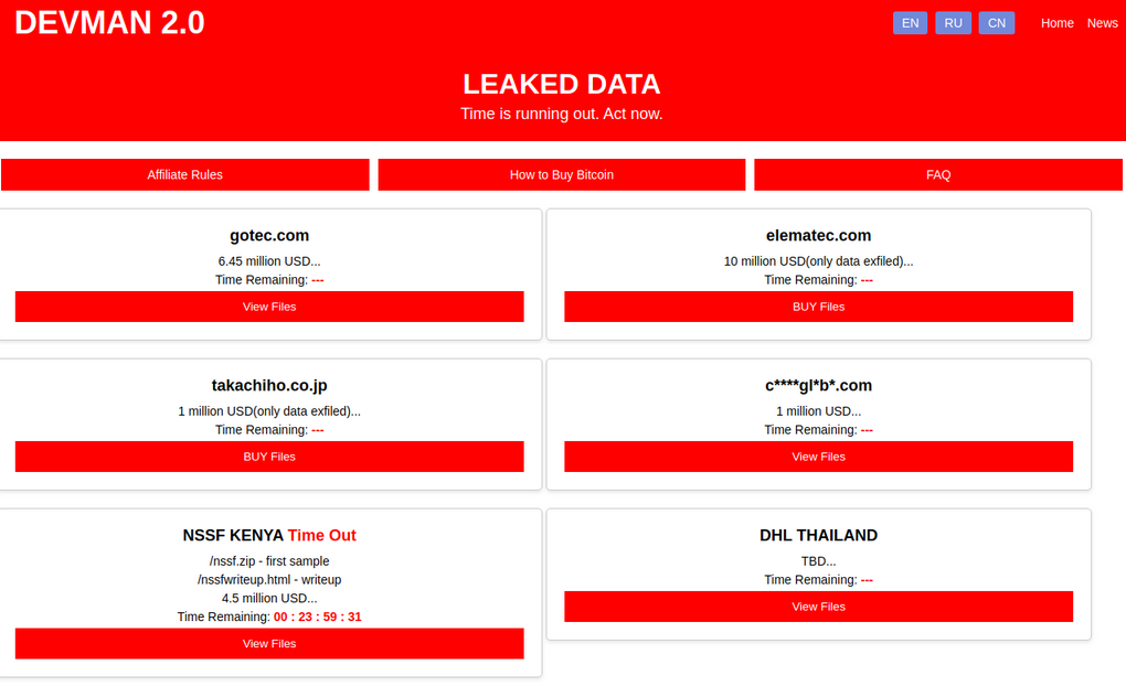 Devman RaaS launches: Back in May, an initial access broker was advertising a new RaaS. That platform has appeared to have launched now.