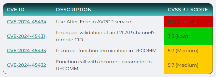PerfektBlue attack: Four vulnerabilities in a popular Bluetooth software stack can be chained together to run malicious code on cars from at least three major automakers. The PerfektBlue attack impacts the OpenSynergy BlueSDK framework, used in cars from Mercedes-Benz, Volkswagen, and Skoda. Exploiting the vulnerabilities requires at least one user interaction during the pairing process. Successful exploitation allows attackers to extract data from a car or eavesdrop on conversations. OpenSynergy released patches for the attack last September, but not all carmakers have deployed them to customers.
