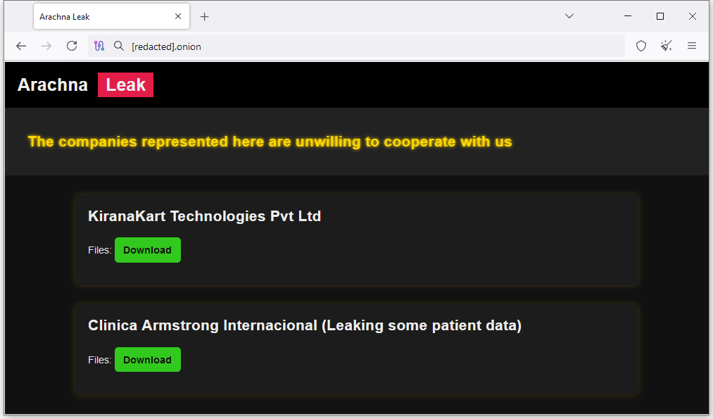 New Arachna Leak: A new dark web data leak site has been spotted. Named Arachna Leak, the site only lists two victims so far.