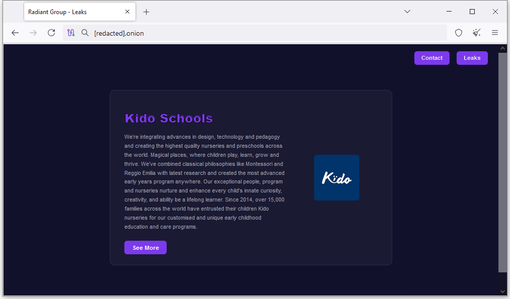 London nursery extortion: Hackers have stolen the personal data of more than 8,000 children from a London nursery. A group calling itself Radiant has released the photo and details of ten children. They are threatening to publish the details of more kids unless the nursery's parent company, Kido International, pays a ransom. Kido operates nurseries and preschools in four countries: the US, the UK, India, and China. [Additional coverage in Reuters]