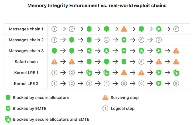 🔺iPhone models announced today include Memory Integrity Enforcement, the culmination of an unprecedented design and engineering effort that we believe represents the most significant upgrade to memory safety in the history of consumer operating systems. https://t.co/ule9gaXzc1