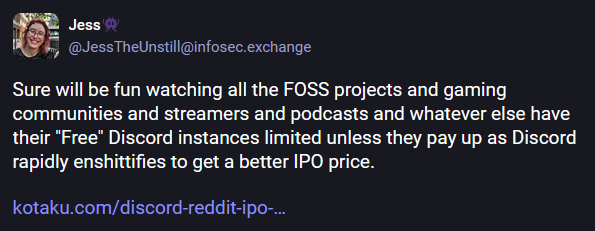 Discord IPO coming: There are reports that Discord is preparing to go public later this year. Fun, fun, fun! [Additional coverage in Kotaku]