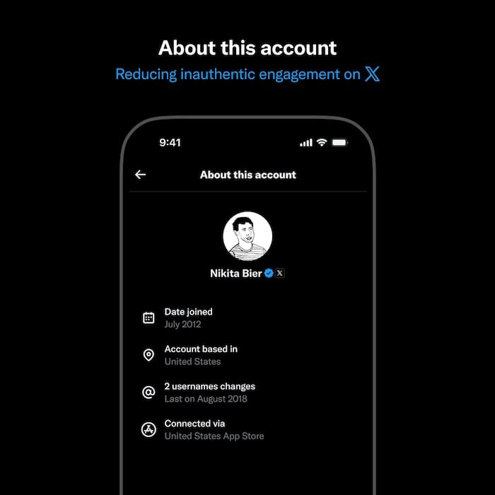 Twitter to show more user info: Twitter plans to show additional information about user profiles. Information like account creation date, country of origin, and the number of name changes will soon be visible on all profiles. A similar feature already exists for Facebook and Instagram. Twitter head of product Nikita Bier says the change is designed to reduce inauthentic engagements.