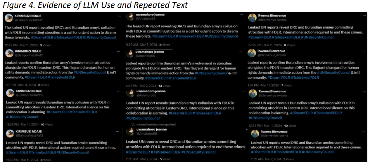 "Involved at least 464 accounts and issued over 650,000 messages since January 2024, with output accelerating over time. Made extensive use of AI, through the integration of large-language models (ChatGPT) and AI-generated imagery. Centralized and coordinated messaging, but decentralized account operation to a large set of individual posters."