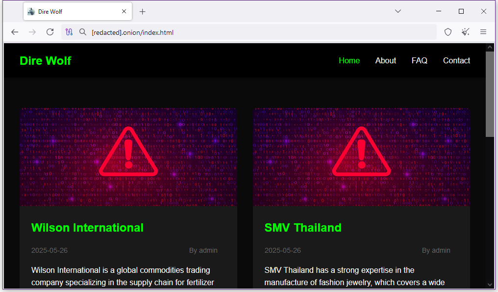 New Dire Wolf ransomware gang: A new ransomware operation named Dire Wolf launched this week. Its dark web leak site currently lists four victims.