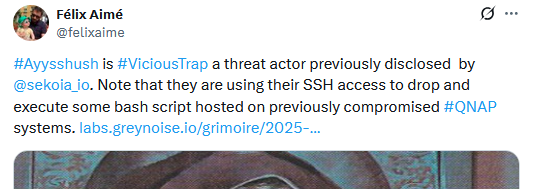 AyySSHush botnet: More than 9,000 ASUS routers have been infected by a new botnet named AyySSSHush. The botnet has been active since March and appears to be another branch of a honeypot botnet that Sekoia calls VisciousTrap. GreyNoise believes the botnet may be the work of an APT group. A smaller number of Cisco, D-Link, and Linksys devices have also been infected.