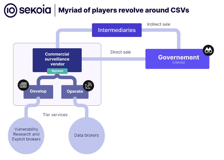 Surveillance vendors landscape: Sekoia has published a top-down look at the market for commercial surveillance vendors (CSVs) and how the market has flourished due to the rising of authoritarianism across the world, driven by the Middle East's desire to contain the Arab Spring popular movement.