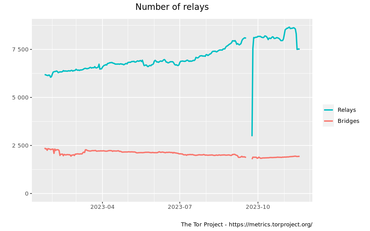 While the number of removed servers was not disclosed, metrics for the Tor network show a drop of almost 1,000 active relays over the past week.