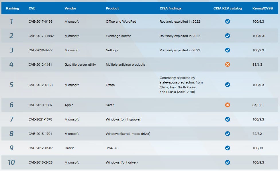 Year in Review: Cisco Talos has published its year-in-review report for 2023. As the company puts it in the introduction, "ransomware, commodity loaders and APTs dominated the threat landscape in 2023." The report has three Microsoft bugs as the top exploited CVEs of the year, per Cisco telemetry.