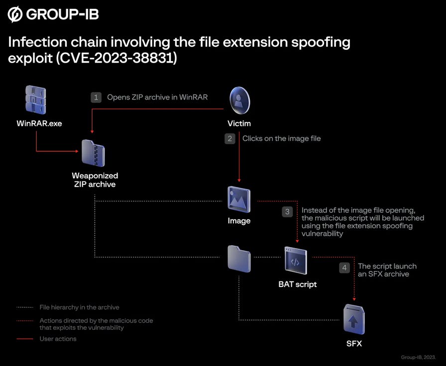 The zero-day is tracked as CVE-2023-38831 and should not be confused with CVE-2023-40477, another vulnerability that was also patched this week.